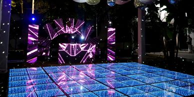 Audio 0-30 px | Iluminación 4 Beam y 4 soles | Booth DJ LED| 4 horas DJ | 4 estructuras | 1 Pista vinil personalizado 4.88x3.66